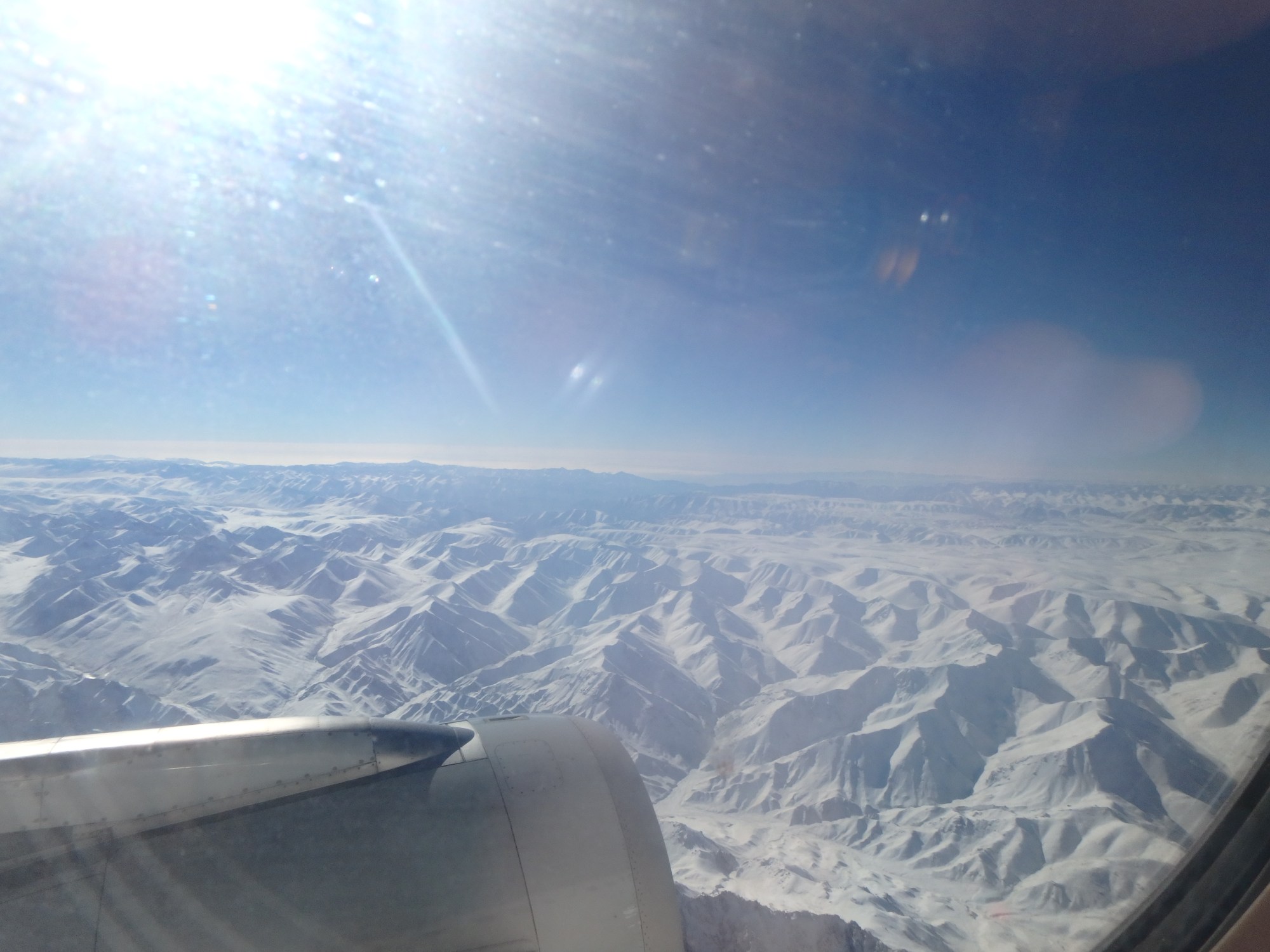 中国の最果て!ウルムチからカシュガルへの飛行機の便にて、上空より天山山脈の端を飛行中の冬の景色です!!!